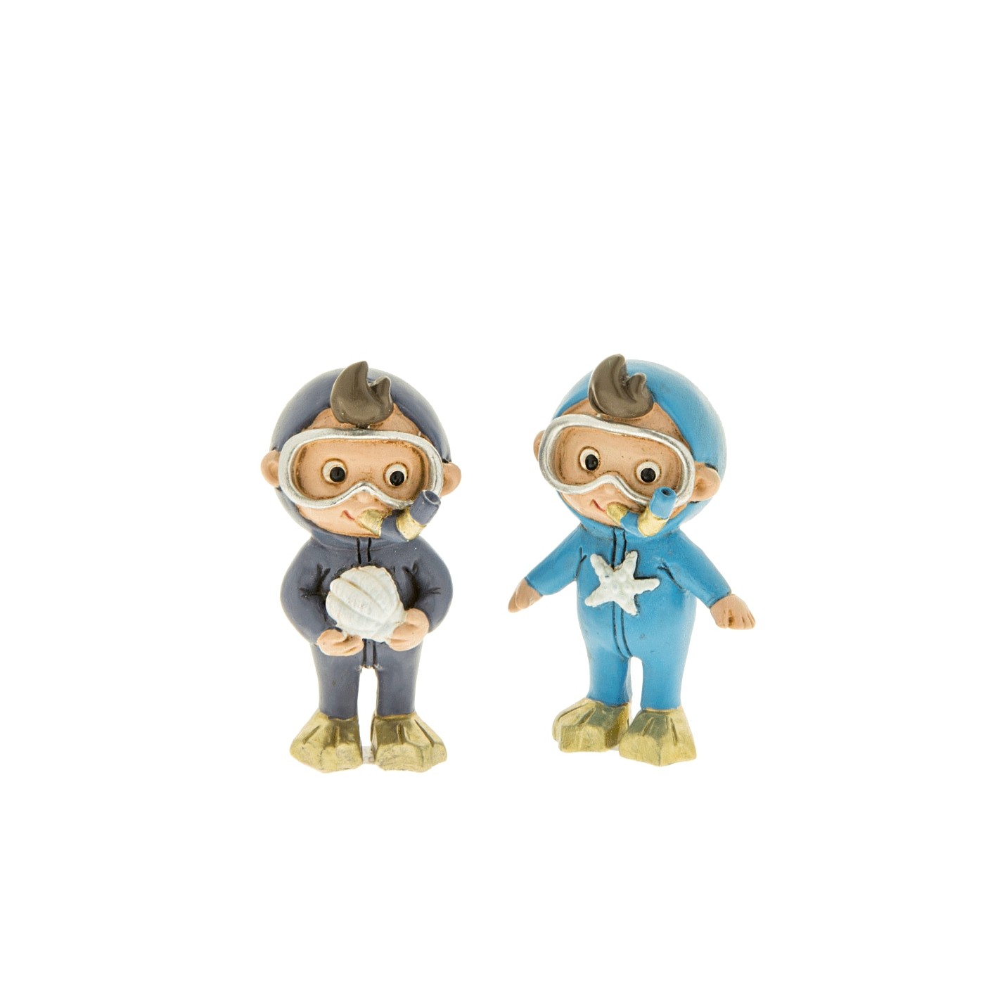 Bomboniera Bambino vestito da SUB in resina colorato Statuina battesimo Nascita h 6 cm set 2 pz Art 04A079