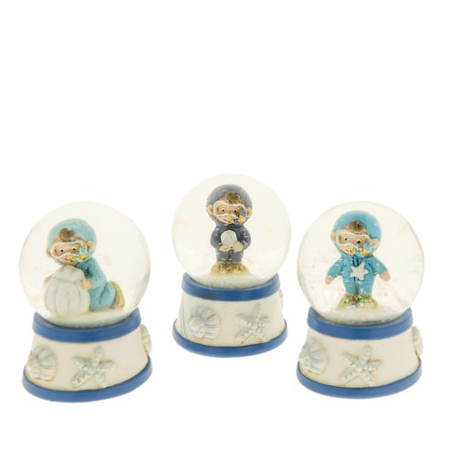 Bomboniera Bambino vestito da SUB in resina colorato Palla Di Neve battesimo Nascita h 6 cm set 3 pz Art 04A081