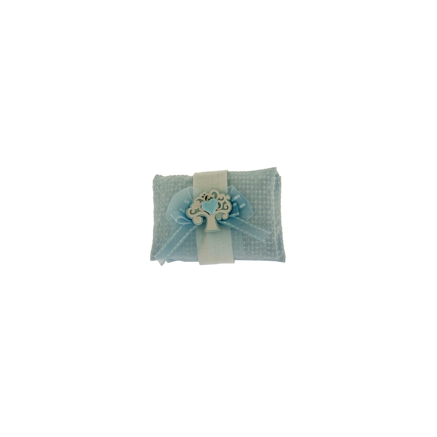Bomboniera Sacchetto Busta in tessuto Celeste con inserto albero della vita in Legno Battesimo Nascita 10 x h 8 cm Confezione 1
