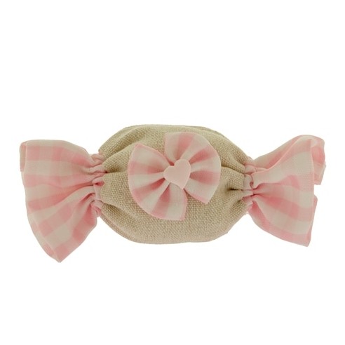 Bomboniera Sacchetto Caramella porta confetti in juta e tessuto Rosa con inserto Fiocco idea decorazione o Bomboniera Compleanno Nascita Battesimo e altre occasioni.