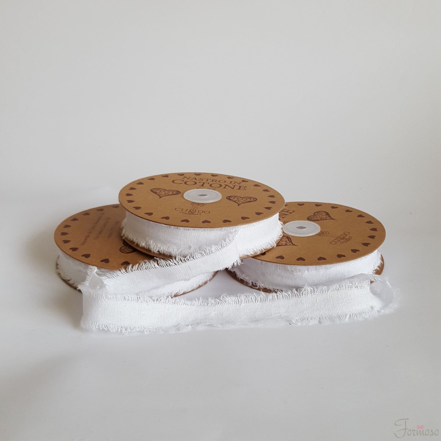 Nastro in cotone grezzo colore Bianco ideale per decorazione bomboniera Matrimonio anniversario nascita battesimo e altre occasioni.
