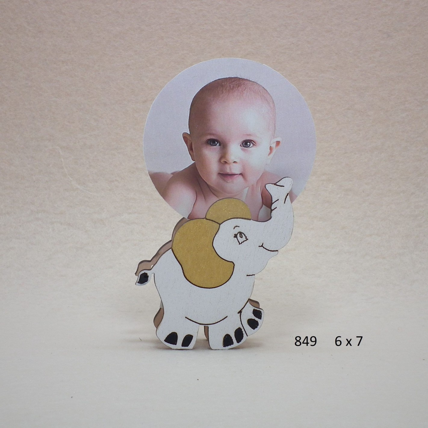 Bomboniera Porta foto in legno a forma di Elefante battesimo nascita 6 x h 7 cm art 849