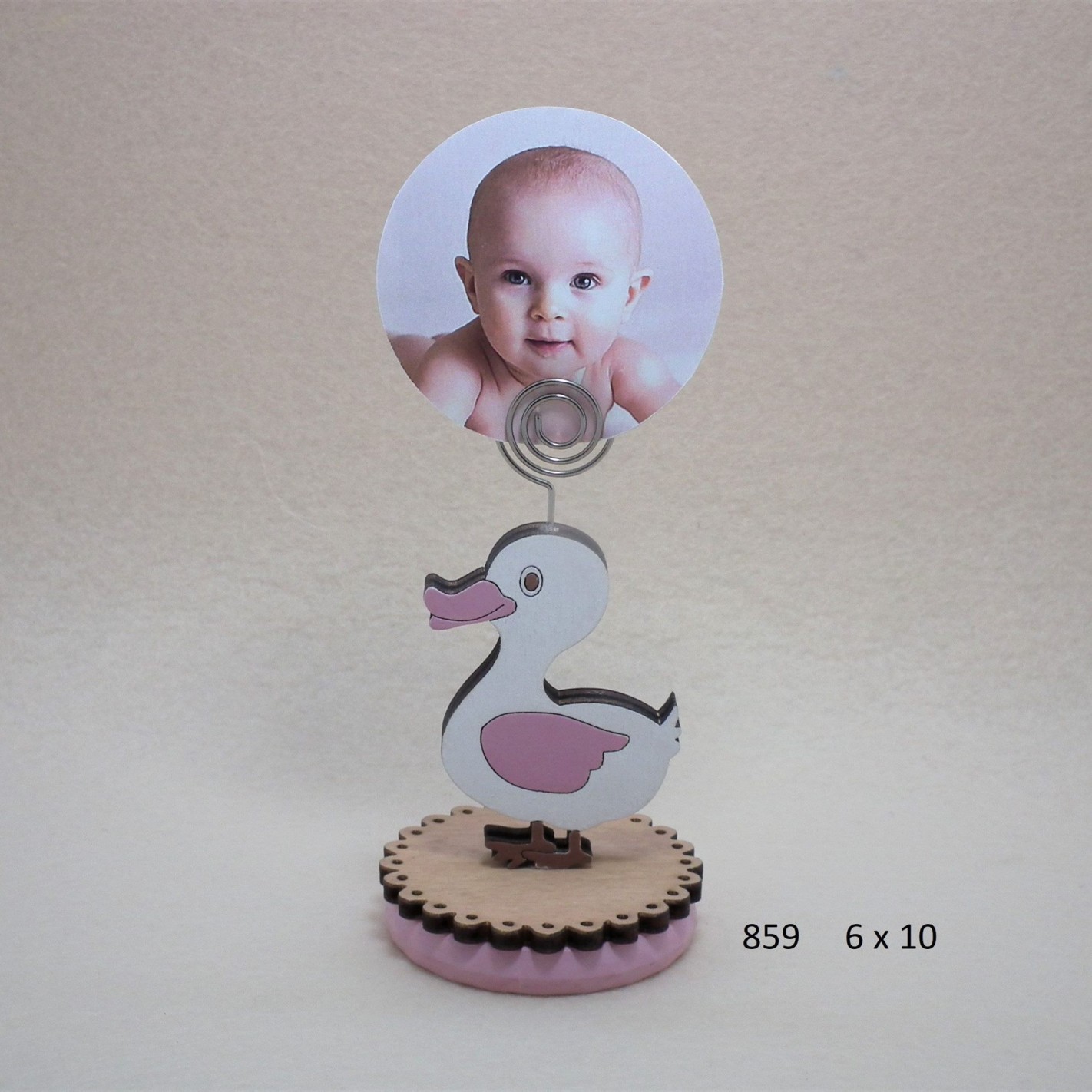 Bomboniera Porta foto in legno a forma di Papera Rosa battesimo nascita 6 x h 10 cm art 859
