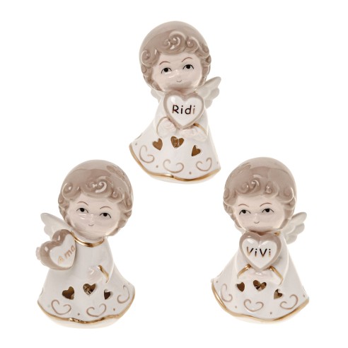 Bomboniera angelo in porcellana bianca e oro con led luminoso h 11 cm set 3 pz art 03A040