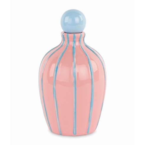 Bomboniera bottiglia olio porcellana colore Rosa con righe azzurre D 9,5 x h 16,5 cm 400 ml con scatola art 29759