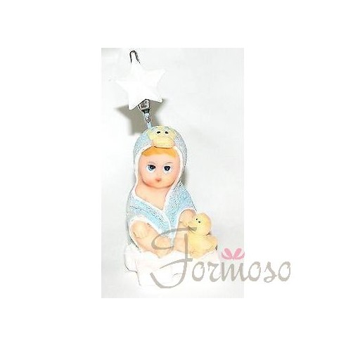 Bimbo bagnetto celeste baby in resina clip porta foto h 80 mm - Art.05028