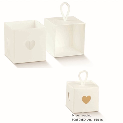 Scatola porta confetti Cubo Bianco con inserto cuore e manico corda misura 50 x 50 x 50 mm marca Florentina ideale per Nascita Battesimo Compleanno Matrimonio Anniversario e altre occasioni.