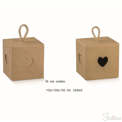Scatola porta confetti Cubo Avana con inserto cuore e manico corda misura 90 x 90 x 65 mm marca Florentina ideale per Nascita Battesimo Compleanno Matrimonio Anniversario e altre occasioni.