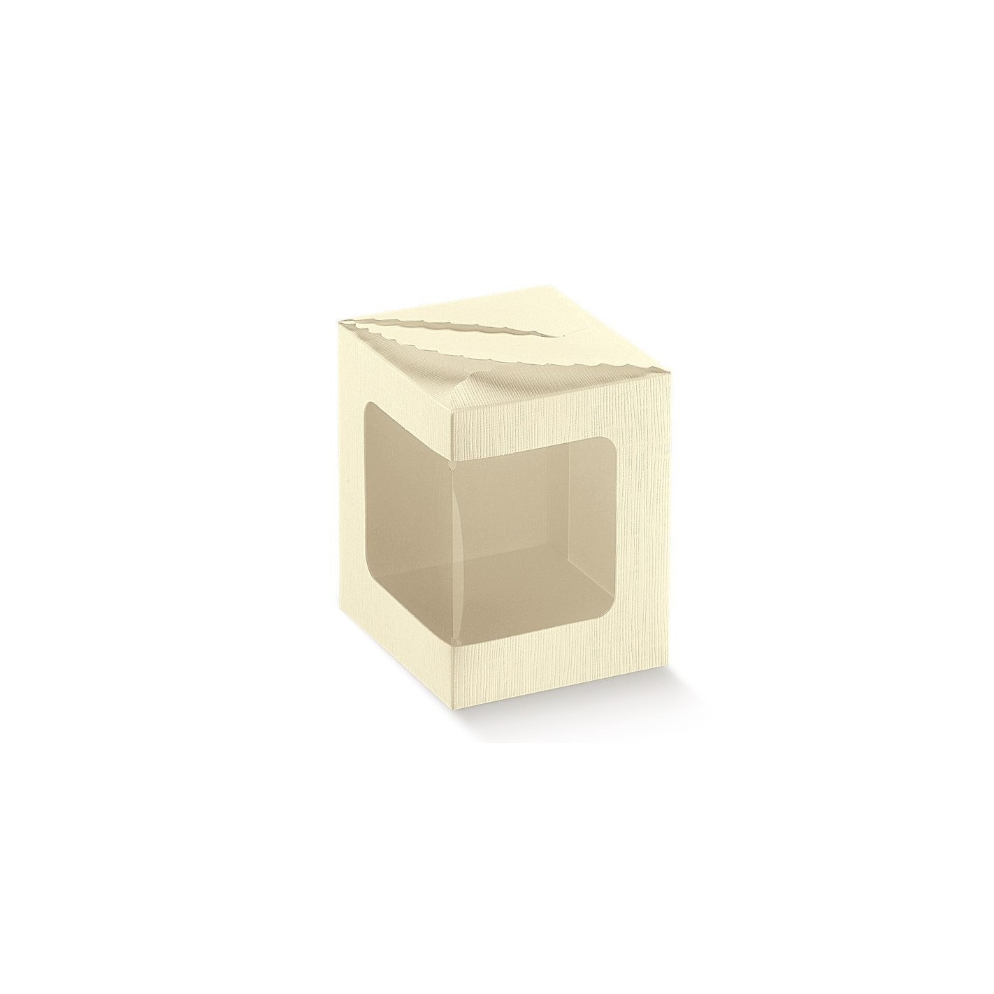 Scatola bomboniera Seta avorio modello ROMBO finestra trasparente 10 x 10 x h 10 cm set 200 pz art 13191
