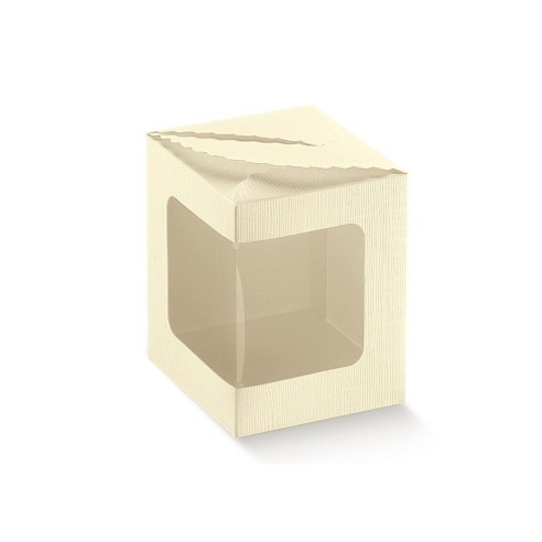 Scatola bomboniera Seta avorio modello ROMBO finestra trasparente 12 x 12 x h 10 cm set 200 pz art 13196