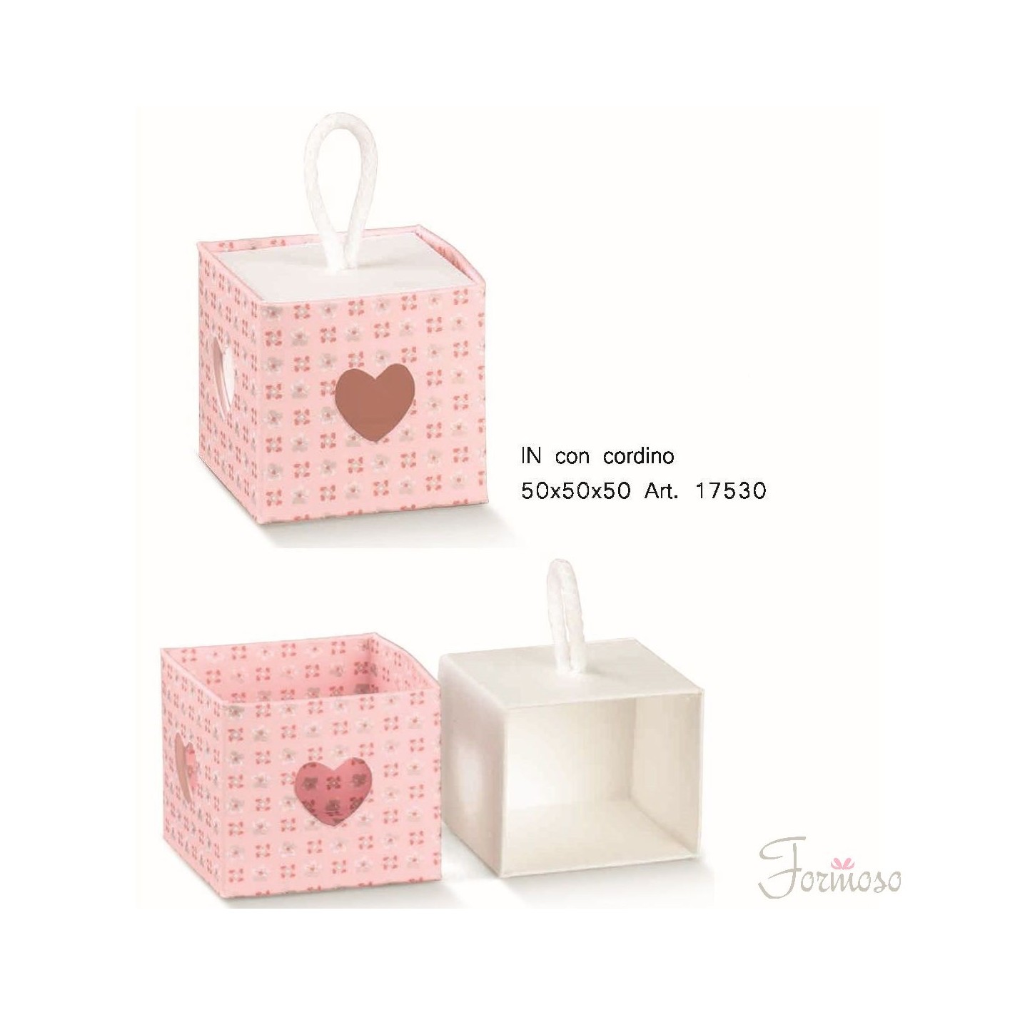 Scatola porta confetti Cubo Bicolore Modello Bloom Rosa con inserto cuore e manico corda misura 50 x 50 x 50 mm marca Florentina ideale per Nascita Battesimo Compleanno e altre occasioni.