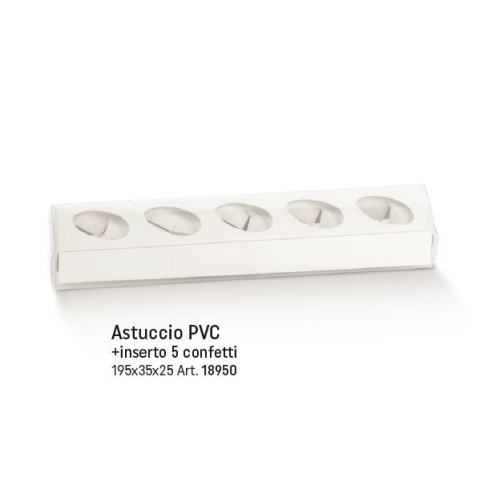 Scatola bomboniera tipo astuccio con pvc porta 5 confetti fibra bianco