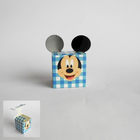Scatola tipo Cubo per porta Confetti modello con inserto Topolino Mikey Mouse Disney colore Celeste azzurro a quadri marca Scotton ideale per Festa Wedding Compleanno Battesimo Nascita Anniversario Matrimonio e tutte le occasioni.