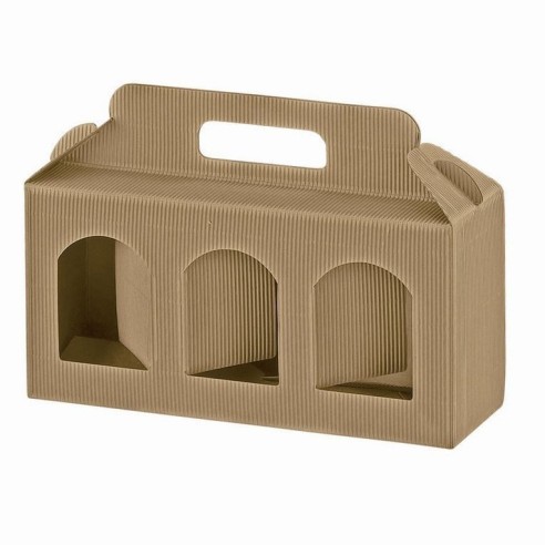 Scatola Onda Avana 3 Scomparti Porta barattoli Confettura Misura 25 x 8 x h 9 cm confezione 100 pz Art 35289