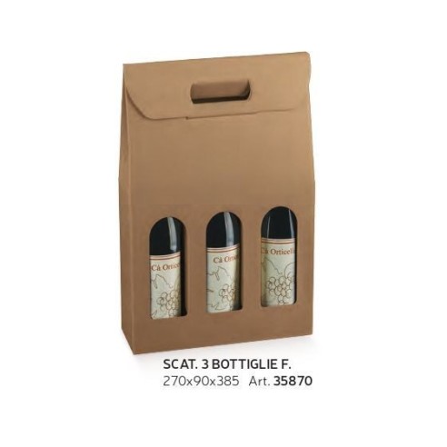 Scatola porta Bottiglia vino 3 scomparti, ideale per confezione regalo ristoranti Frantoi ecc.. colore Avana.