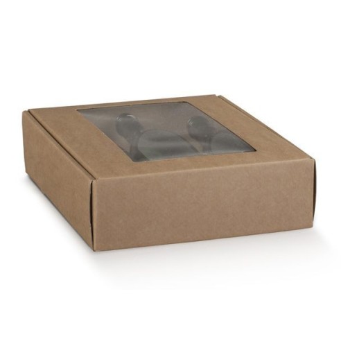 Scatola porta Vino modello CANTINETTA per 3 Bottiglie colore AVANA con finestra Trasparente idea regalo, ideale per Negozi bar Ristoranti ecc...