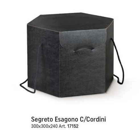 Scatola tipo SEGRETO ESAGONALE colore SETA NERO porta Panettone artigianale misura 30 x 30 x h 24 cm Confezione 30 pz Art 17152