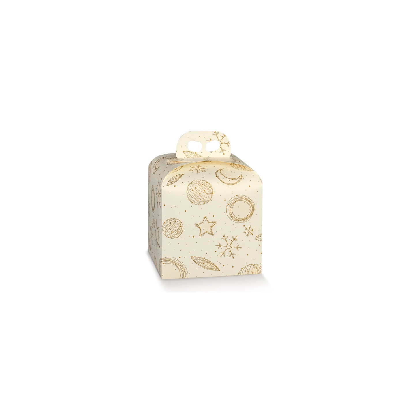 Scatola in cartone porta Panettone ideale per pasticceria Bar ristoranti e altro confezioni Natalizie , colore Bianco con disegni universo in Oro marca Scotton ideale per Confezioni .
