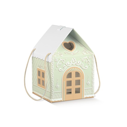 Scatola per pasticceria modello casetta con manico corda colore verde ideale per pasticceria Bar e altro, marca Scotton .