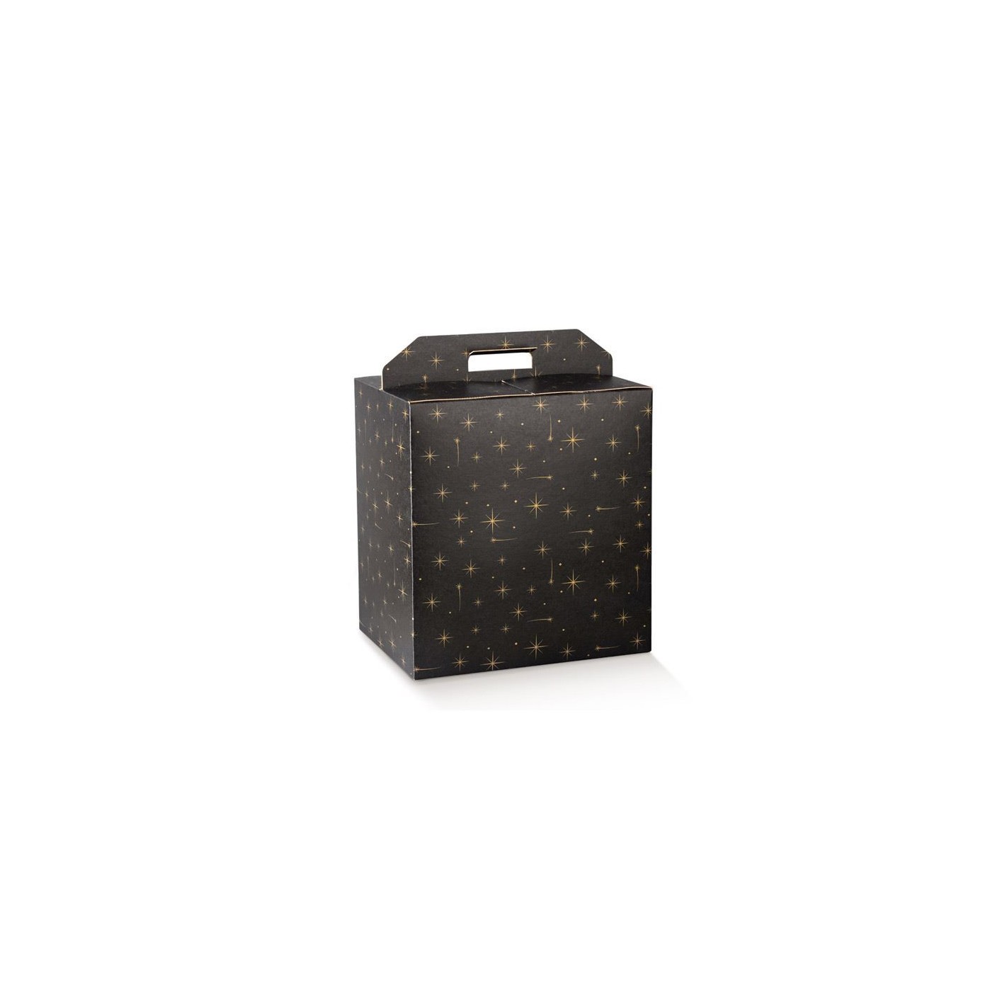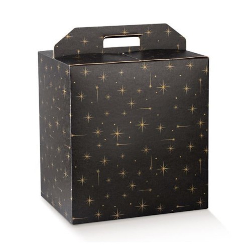 Scatola in cartone porta Panettone e Bottiglia confezioni Natalizie colore nero con stelle ORO mis. 28 x 20 x h 35 cm Confezione 50 pz Art 38908