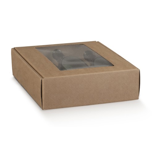 Scatola porta 3 bottiglia Cantinetta avana con finestra trasparente 34 x 28 x h 9 cm set 30 pz art 38697