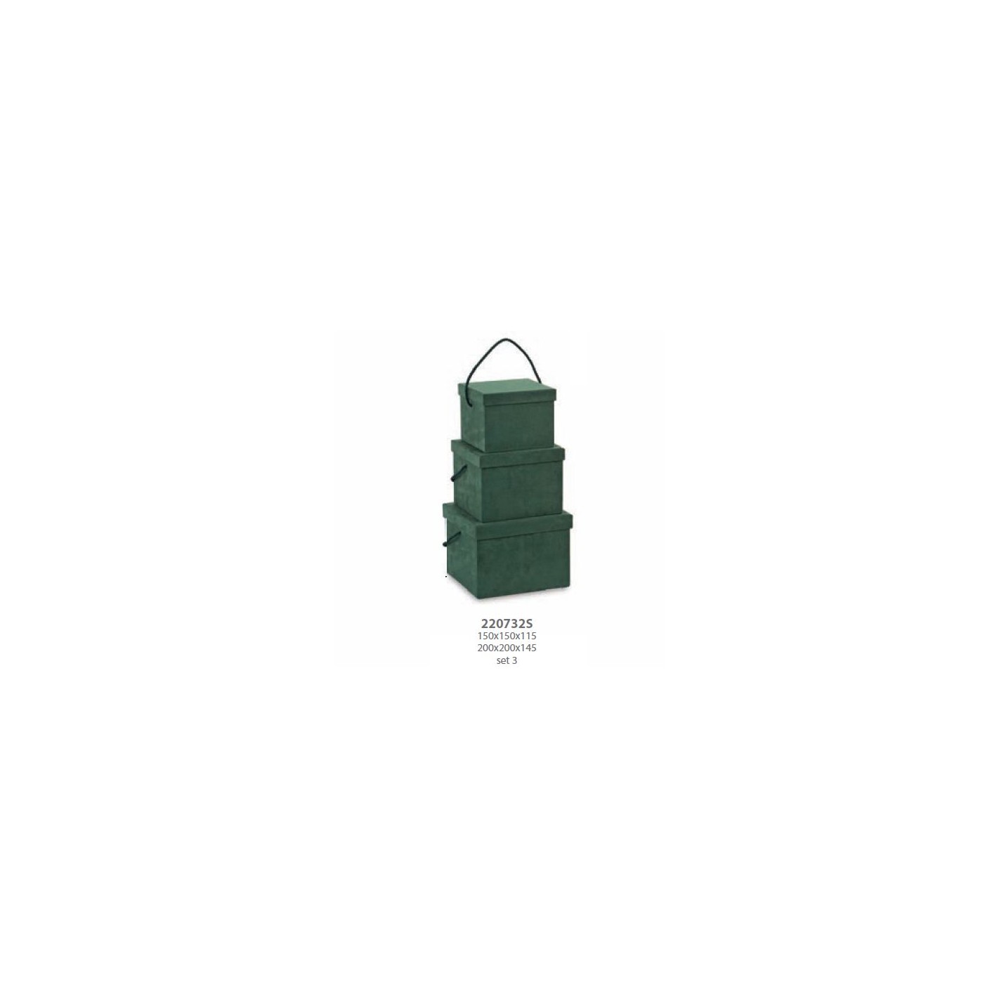 Set 3 scatola Alcantara Verde Wedding decorazione 15X15Xh 11,5 / 20X20Xh 14,5 cm Confezione 1 set art 20732