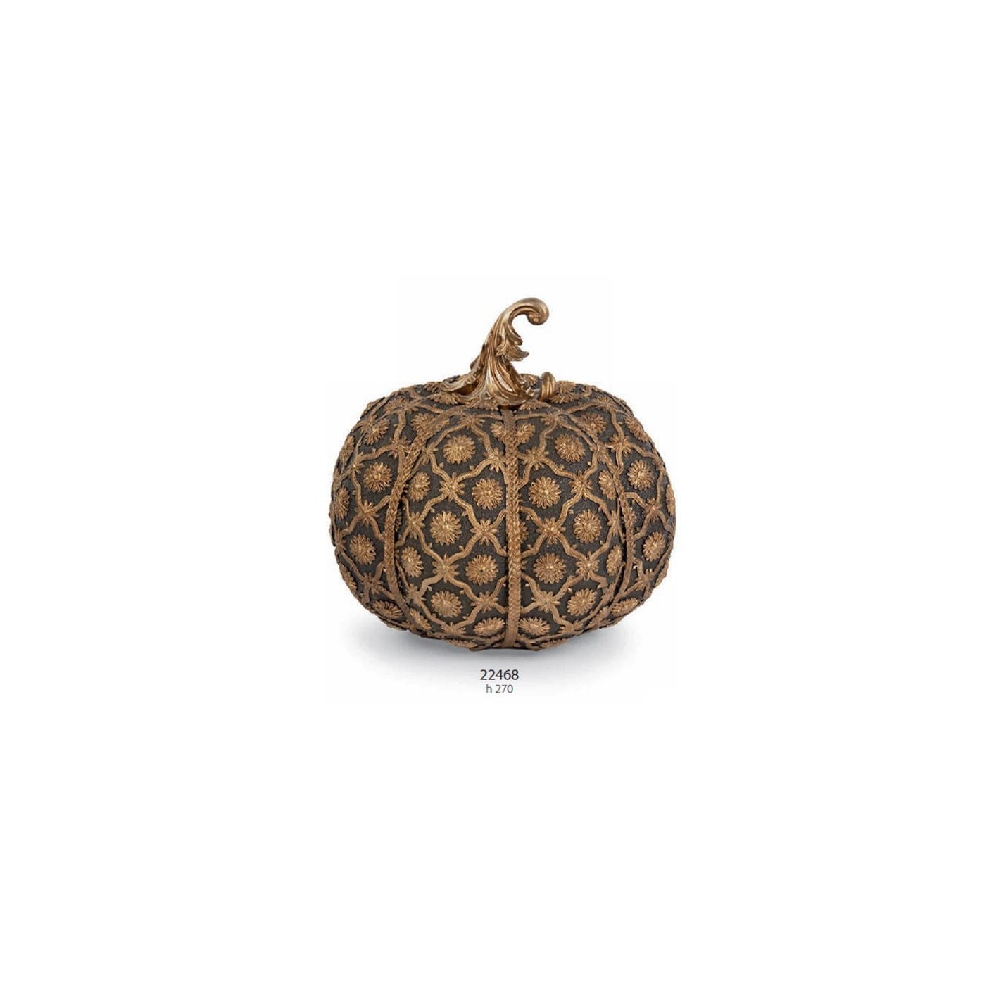 Zucca in Poliresina NERA con ricami colore Oro idea Decorazione allestimento Natale Halloween Matrimonio Wedding Compleanno Nascita Battesimo e altre occasioni.