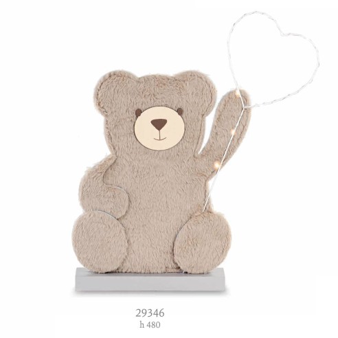 Sagoma orsetto in Eco pelliccia e legno con inserto cuore a Led Party Planner Allestimento h 48 cm art 29346